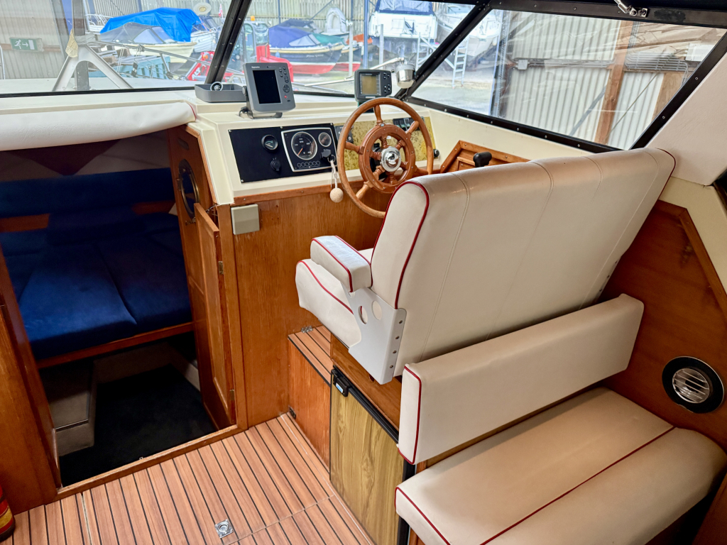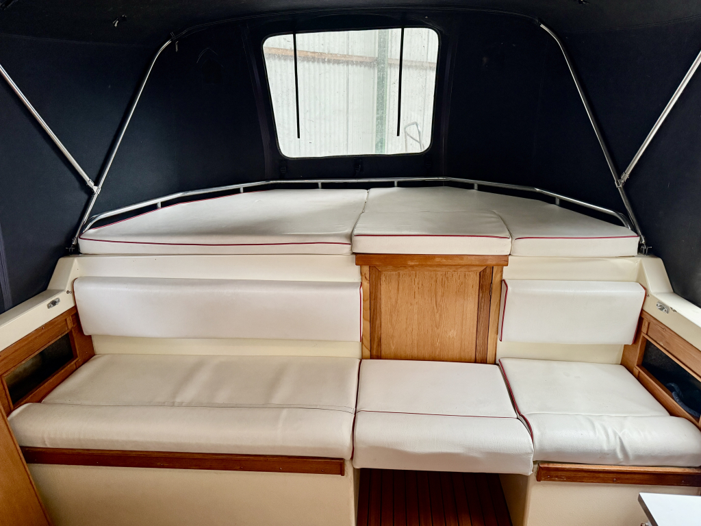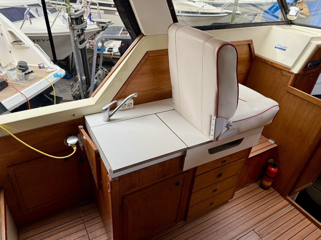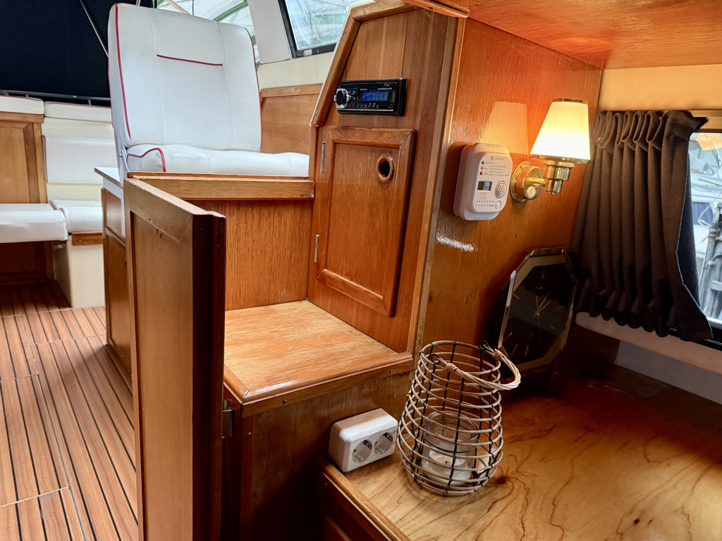 Agder 840 AK, Heerlijk ruim en comfortabel schip. De Agder kenmerkt zich door de ruime salon, gezellige kuip en functionele achter kajuit. De boot is zeer compleet uitgerust met onder andere: nieuwe cabriolet kap, kussen set, nieuwe kachel, en vele upgrades. De 42 pk sterke Vetus viercilinder diesel is in 2022 nieuw geplaatst en heeft 600 vaaruren. de boot verkeerd in een keurige staat van onderhoud. Uitrusting: koelkast, boegschroef, nieuwe bekleding, plotter, kookstel, hydrofoor , kachel, boiler, nieuwe tent, badplatform, buitendouche, vuil watertank, etc.