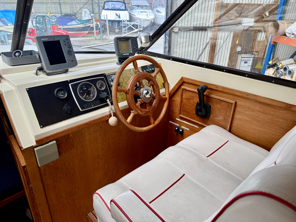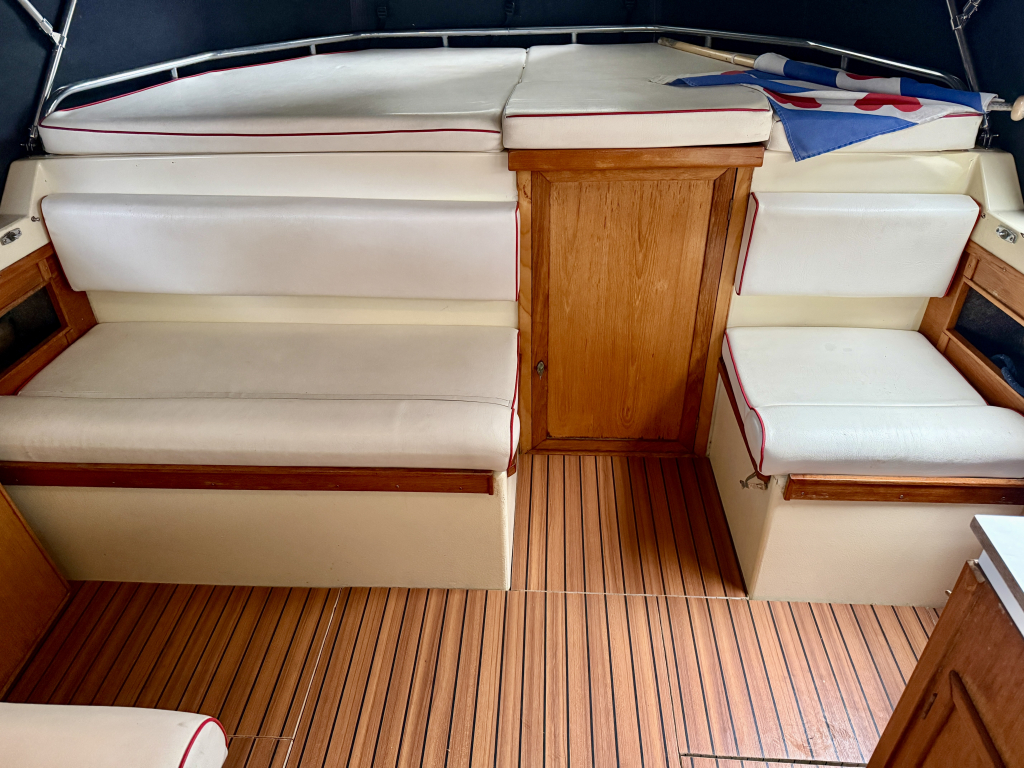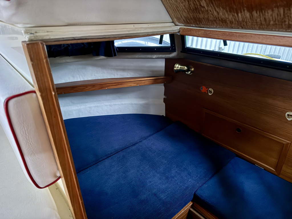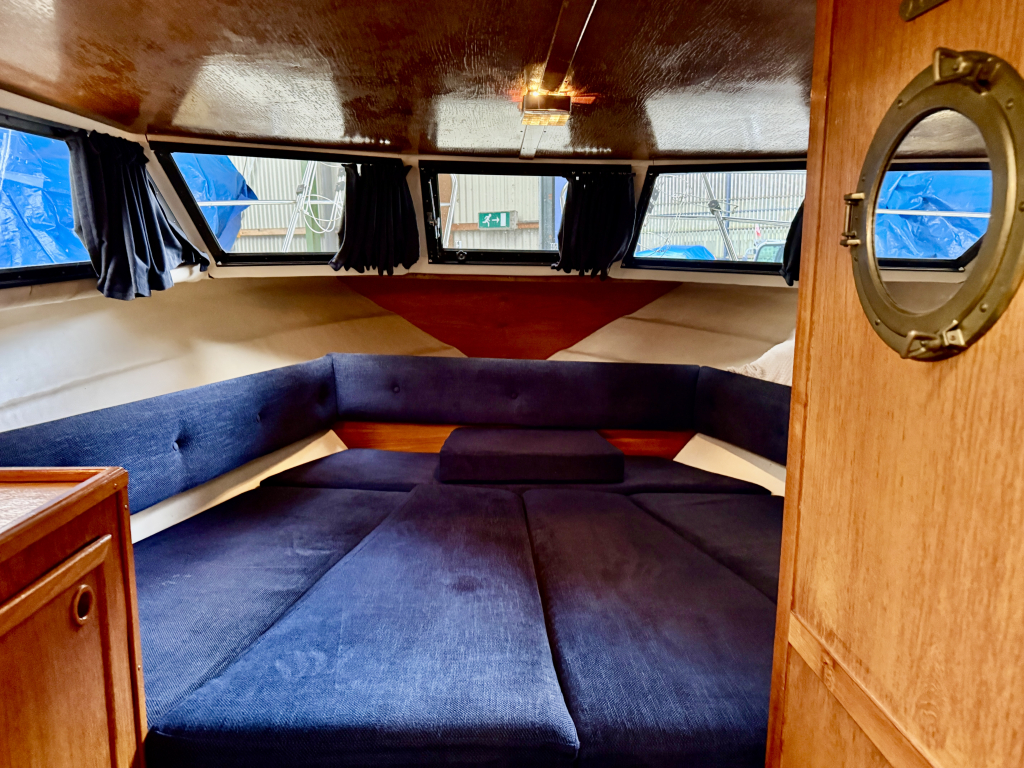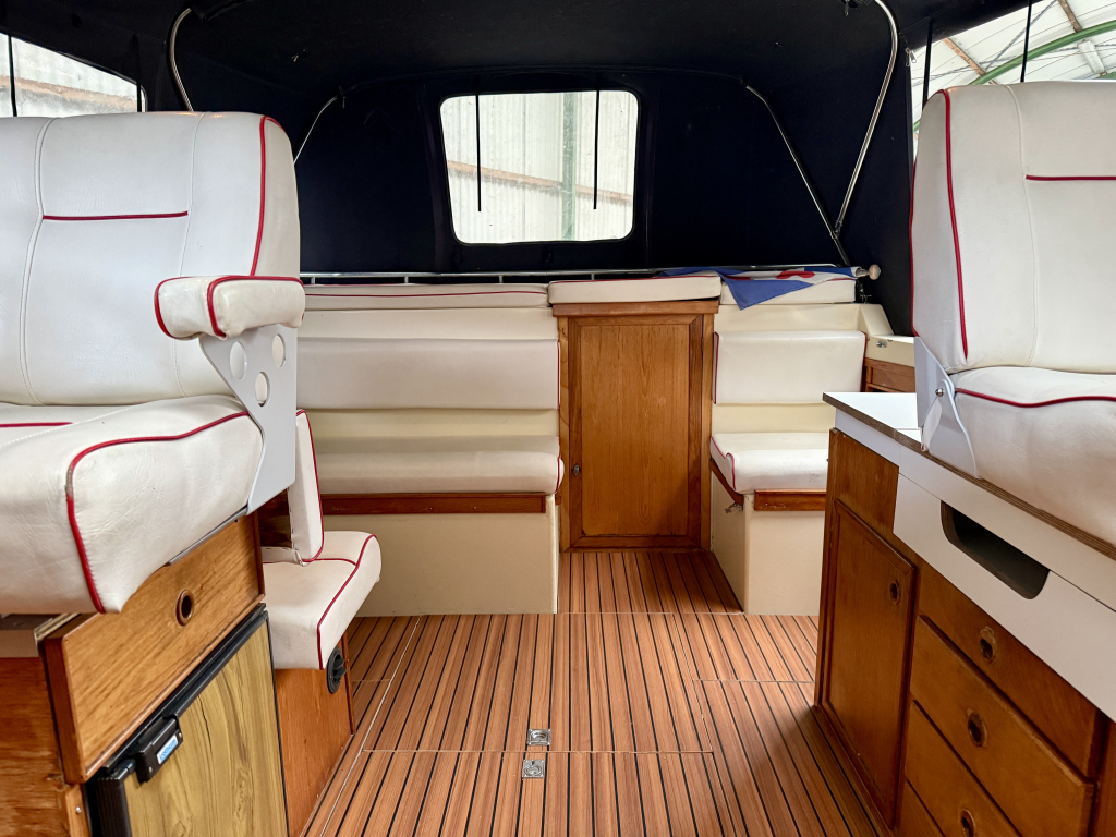 Agder 840 AK, Heerlijk ruim en comfortabel schip. De Agder kenmerkt zich door de ruime salon, gezellige kuip en functionele achter kajuit. De boot is zeer compleet uitgerust met onder andere: nieuwe cabriolet kap, kussen set, nieuwe kachel, en vele upgrades. De 42 pk sterke Vetus viercilinder diesel is in 2022 nieuw geplaatst en heeft 600 vaaruren. de boot verkeerd in een keurige staat van onderhoud. Uitrusting: koelkast, boegschroef, nieuwe bekleding, plotter, kookstel, hydrofoor , kachel, boiler, nieuwe tent, badplatform, buitendouche, vuil watertank, etc.