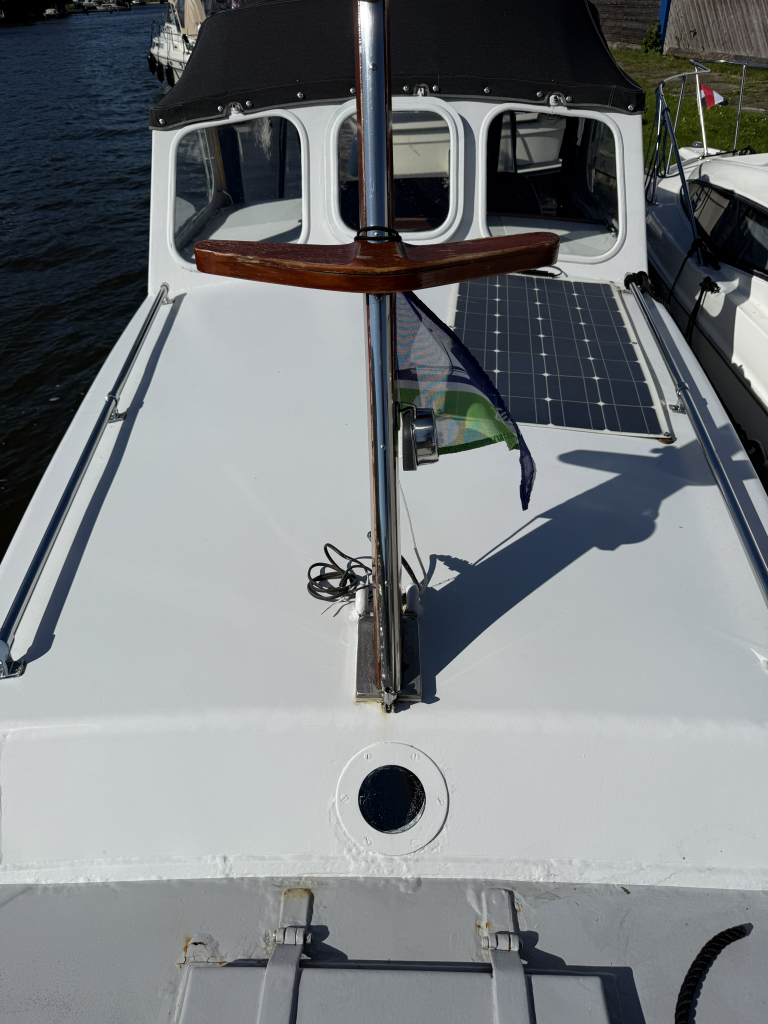 Fraaie klassieke bakdekker gebouwd als patrouille boot voor de stad Leeuwarden. Een boot met een mooie historie met een schitterende lijn. De boot is recent in het geheel gerestaureerd en verkeert in een keurige staat. Cabriolet kap is 2 jaar geleden nieuw geplaatst. Motor: Drinkwaard 3 cilinder diesel 1000uren! In de gezellige salon is een vast dubbel bed aanwezig, evenals een volwaardige pantry, met koelkast kookstel en wasbak. De boot is tevens voorzien van een toiletruimte met elektrisch toilet.