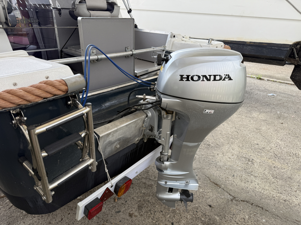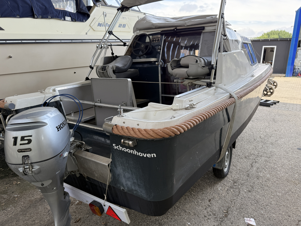 Een hele leuke en complete motorboot. De boot is 6 meter lang en recent flink opgeknapt. Zo is er een nieuwe Honda 15 pk outboard geplaatst en is er veel aan boord vernieuwd. De boot is voorzien van nieuwe electronica, 2 slaapplaatsen, keukentje etc. Gewoon een leuk en handig scheepje. De boot is lekker breed en daardoor heel stabiel. De set is compleet incl ongekeurde trailer.