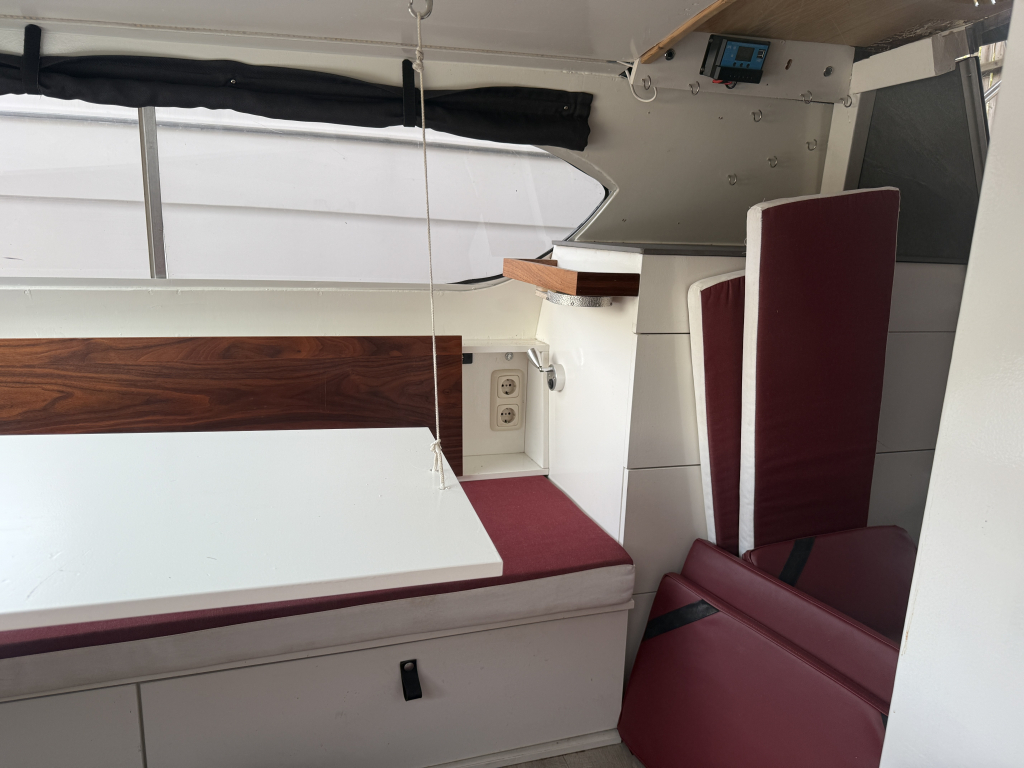 Een hele leuke en complete motorboot. De boot is 6 meter lang en recent flink opgeknapt. Zo is er een nieuwe Honda 15 pk outboard geplaatst en is er veel aan boord vernieuwd. De boot is voorzien van nieuwe electronica, 2 slaapplaatsen, keukentje etc. Gewoon een leuk en handig scheepje. De boot is lekker breed en daardoor heel stabiel. De se