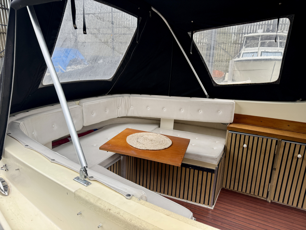 Een erg fraaie noorse Spitsgatter met veel verrassende details en in een keurige staat. De boot is voorzien van een rondzit in de kuip, en twee stoelen naast elkaar als vaarpositie. De boot is voorzien van een driecilinder Volvo motor met ca 36pk welke in een keurige staat verkeerd. De motor is van een recentere datum. Dit schip is uitgerust met een boeg schroef, wat het varen comfortabel en gemakkelijk maakt. Verder is dit schip zeer compleet uitgerust met onder andere Onderwater toilet, zonnepaneel, zware verbruikers accu, ETC. Het leuke van deze Dutchline uitvoering is de fraaie kabelaring rondom. De tent en de bekleding verkeren in een goede staat. Bent u opzoek naar fraaie en complete Nidelv 24, dan is dit schip zeker de moeite van het bezichtigen waard. De boot ligt bij ons in Sneek, en nu bent van harte welkom om de boot te bezichtigen.